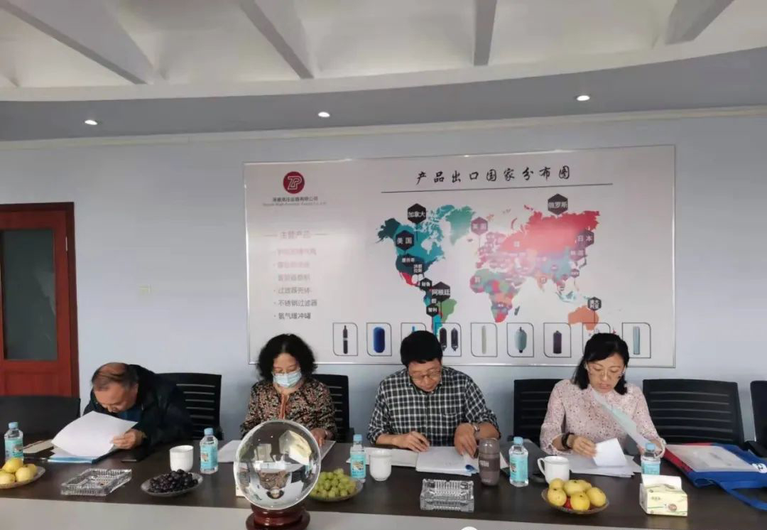 高壓容器“工業設計中心”驗收工作會議,由張家口市工業局趙穎科長,專家王占英教授、朱春華教授、李鋒高級會計師評審驗收,縣發改局黨委副書記曹瑩輝、工信系統劉曉明科長、喬正學,縣中小企業公共服務平臺胡康立主任,企業商會楊劍峰秘書長,高壓容器楊東??偨浝怼⑹紫O計師孫寶生、行政經理張海燕熱情接待并出席了本次評審會。