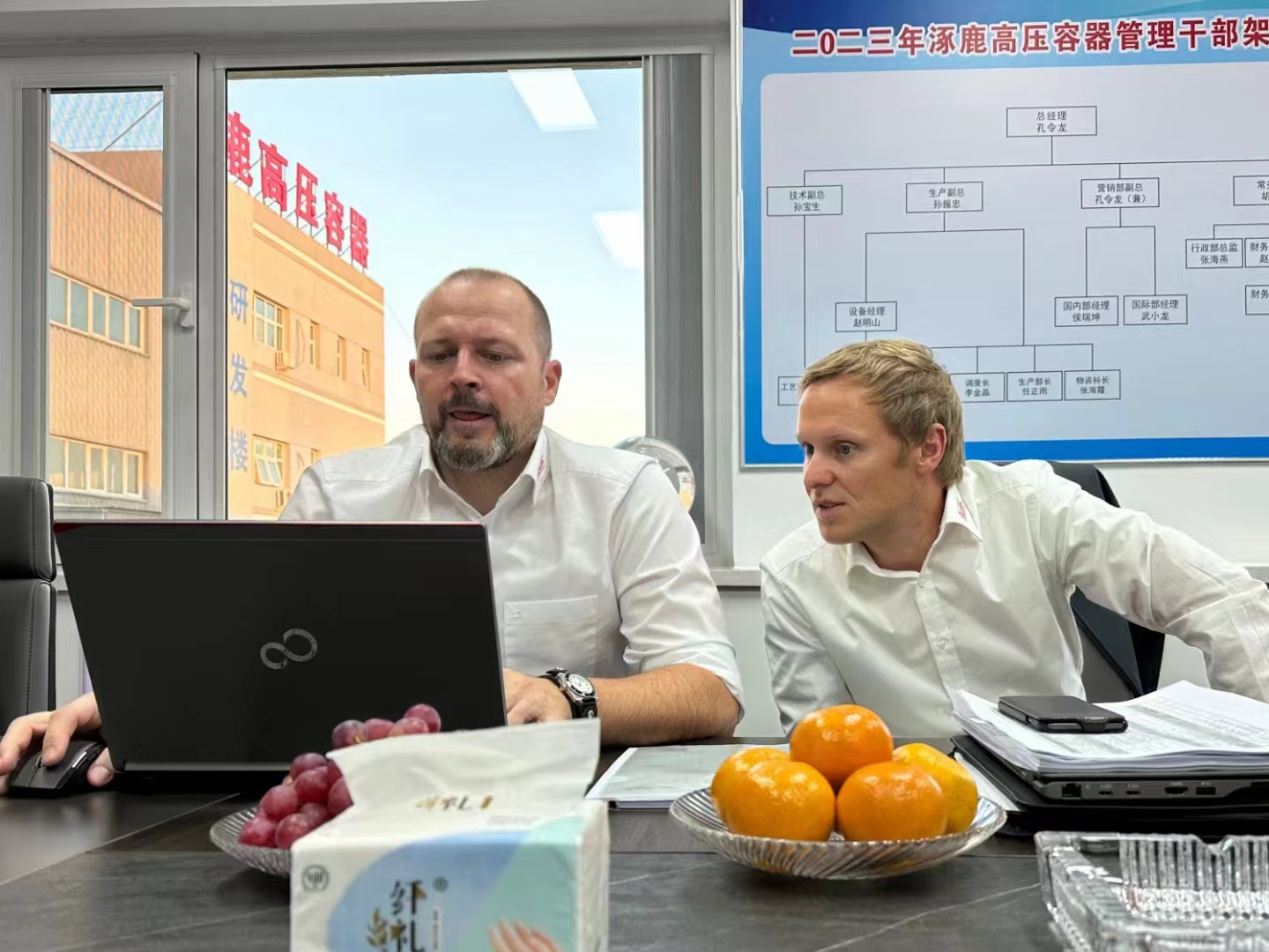 近日,涿鹿高壓容器長期戰略合作伙伴德國Roth公司總經理Jens 及采購經理Stefan,受涿鹿高壓容器邀請,到來涿鹿高壓容器進行實地考察。